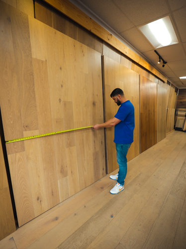 to view large flooring samples and receive expert guidance before scheduling their free in-home estimate.